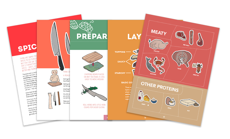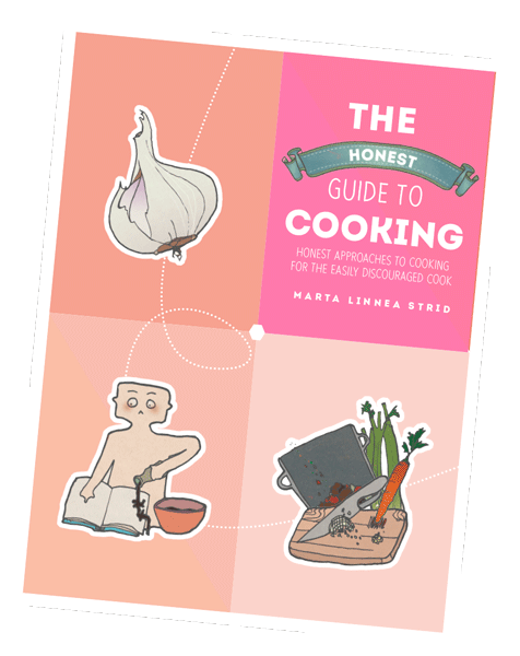 The Honest Guide to Cooking ebook containes 128 colourfully illustrated pages about cooking, about learning to love it, to laugh about it, to feel more relaxed about the subject. Here's what it touches on: